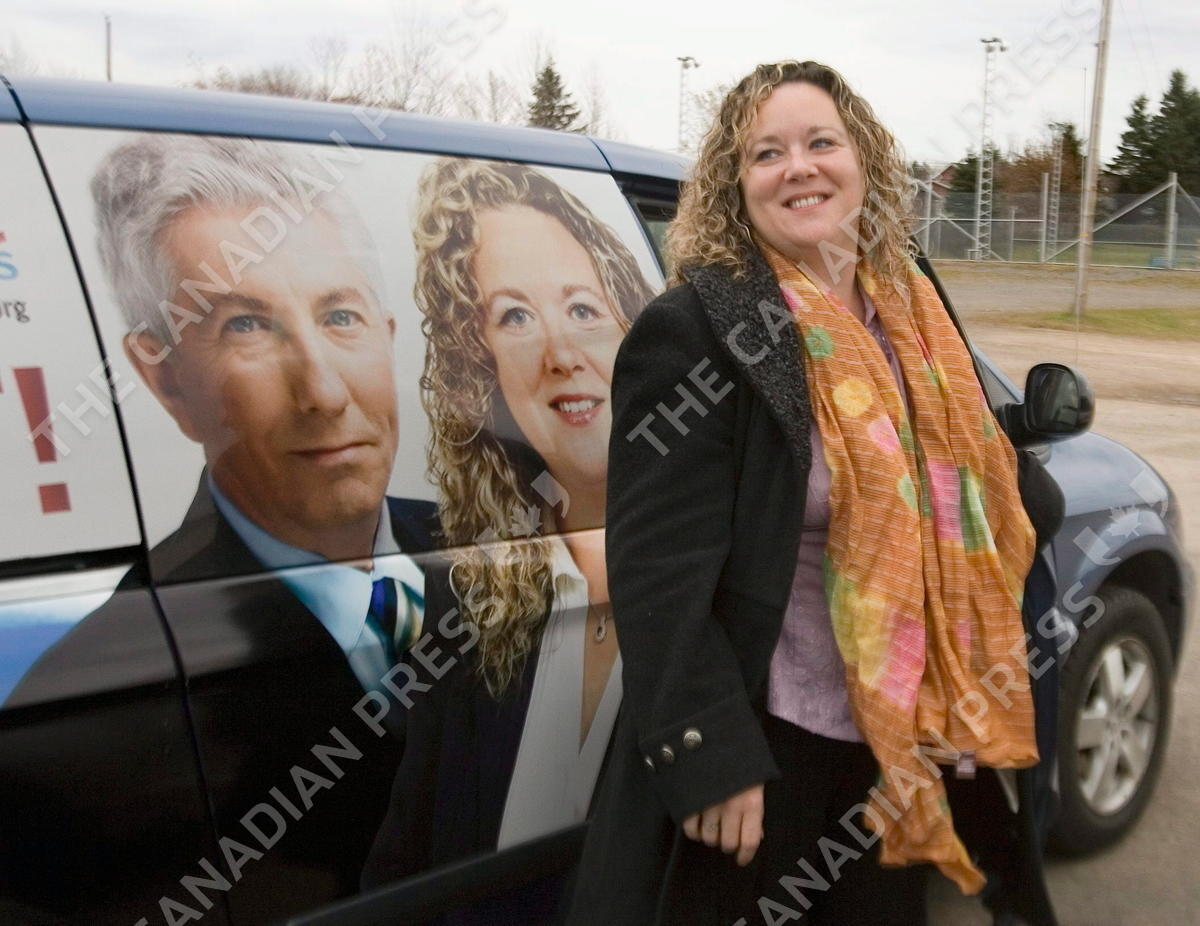 CORRECTED VERSION - CORRECTS SURNAME - Bloc Quebecois candidate Nancy Gagnon steps out of her campaign van to visit a polling station Monday, Nov.9, 2009 in Saint-Jean-Port-Joli, Que. Gagnon is running in a federal byelection in the riding of Montmagny-L'Islet-Kamouraska-Rivière-du-Loup. THE CANADIAN PRESS/Jacques Boissinot