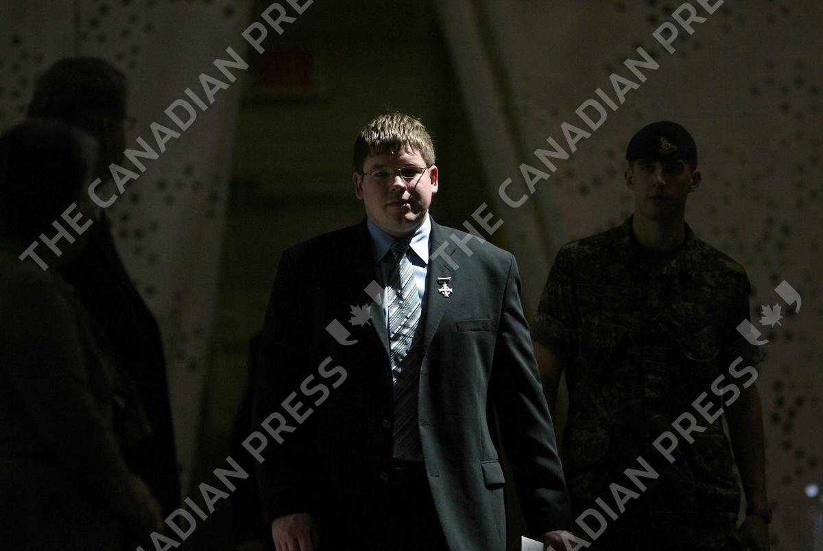Jason Beam, husband of Capt. Nichola Goddard, arrives at a memorial service for Capt. Nichola Goddard on Thursday May 31, 2006 at Canadian Forces Base Shilo, near Brandon, Man. The memorial service was held to honour Capt. Nichola Goddard, who was Canada’s first female combat soldier killed in battle. She died by enemy fire in Afghanistan on May 17 near Kandahar, Afghanistan. (CP PHOTO/Christopher Pike)