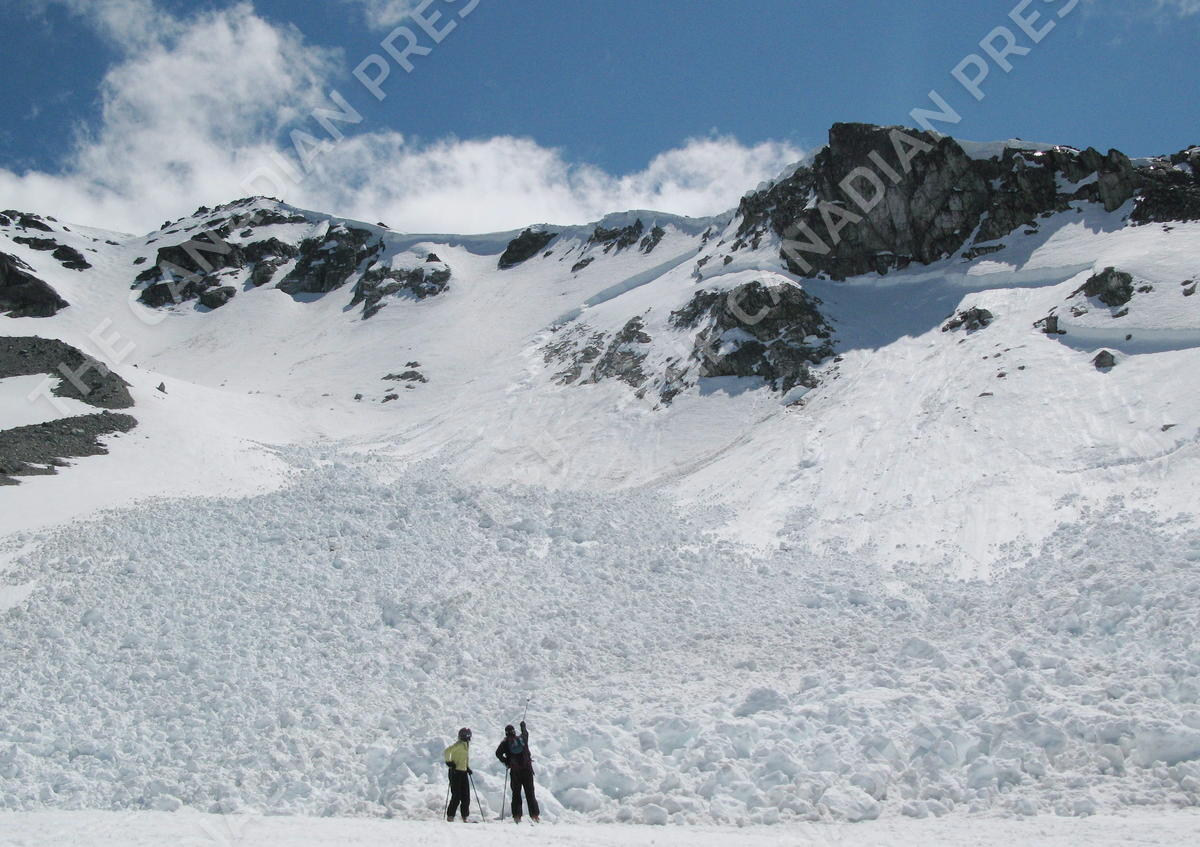 Skiers stop to check out the debris from a large avalanche on Blackcomb mountain in Whistler, B.C. Saturday , May 24, 2008. Skiers enjoyed sunny skies and warm tempertures as the ski season comes near the end. THE CANADIAN PRESS/Jonathan Hayward