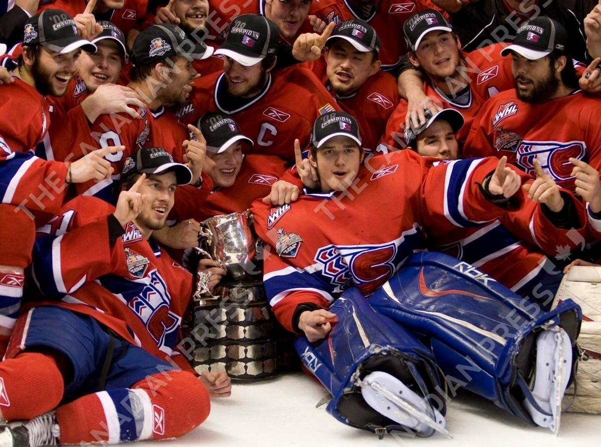 Spokane Chiefs' goaltender Dustin Tokarski sits with teammates next to the Memorial Cup after winning the hockey championship in Kitchener, Ont. Sunday, May 25, 2008. The Chiefs defeated the Rangers 4-1 to win the championship.THE CANADIAN PRESS/Adrian Wyld