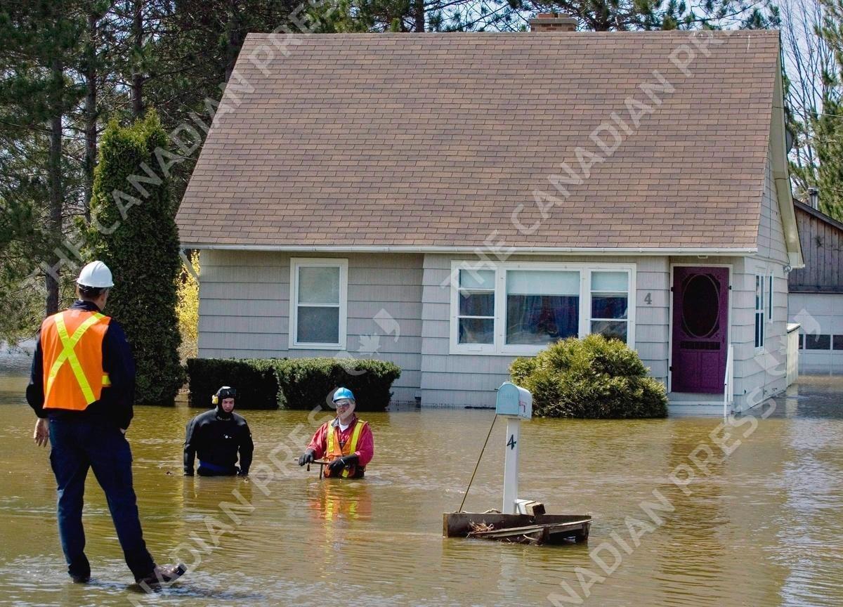 Wokers turn off the water supply to a flooded house in Fredericton on Thursday, May 1, 2008. The St. John River is near record flood levels and several streets in the New Brunswick capital are impassable. THE CANADIAN PRESS/Andrew Vaughan