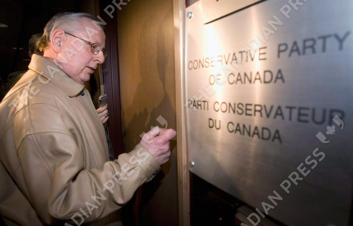 Andre Thouin, an official with Elections Canada, knocks on the door of Conservative Party Headquarters of Canada in Ottawa on April 15, 2008 during an RCMP raid of the office. Elections Canada and the Conservative party have been engaged in a protracted legal battle over alleged campaign spending irregularities from the 2006 election. THE CANADIAN PRESS/Tom Hanson