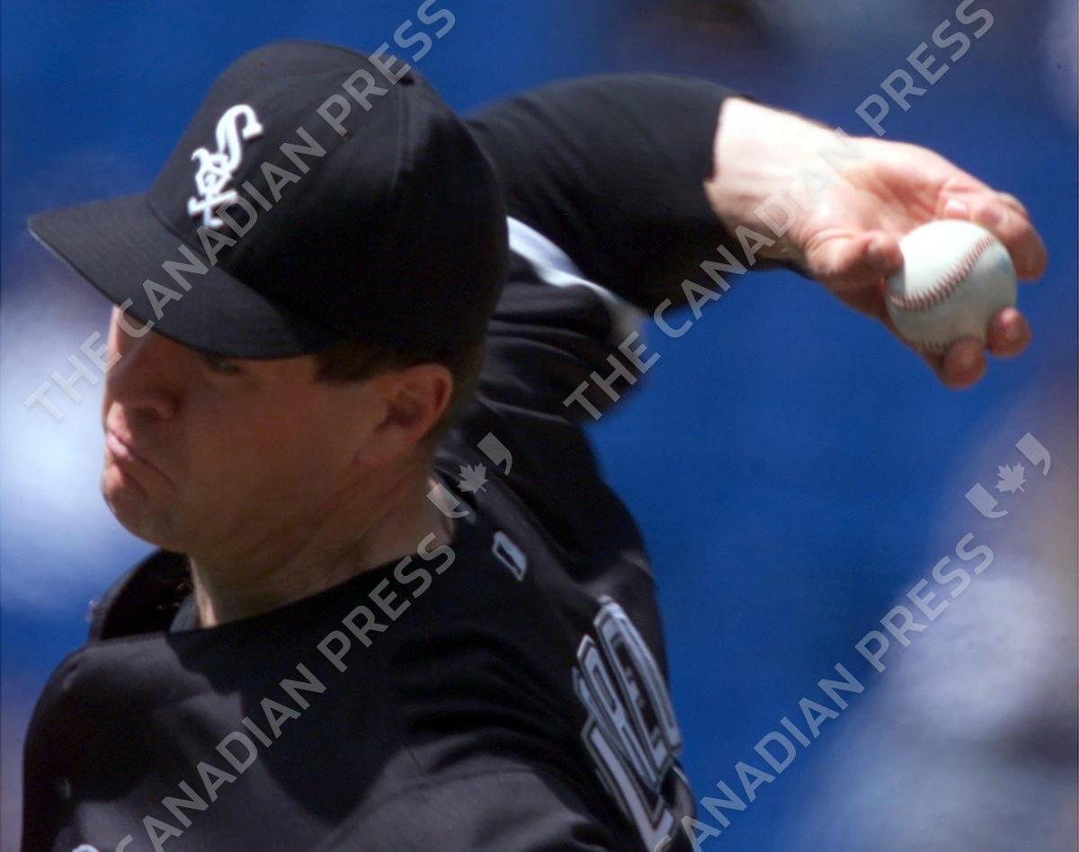 Chicago White Sox starting pitcher Cal Eldred launches a pitch during fourth inning AL action against the Toronto Blue Jays in Toronto on Sunday May 21, 2000. (CP PHOTO/Frank Gunn)
