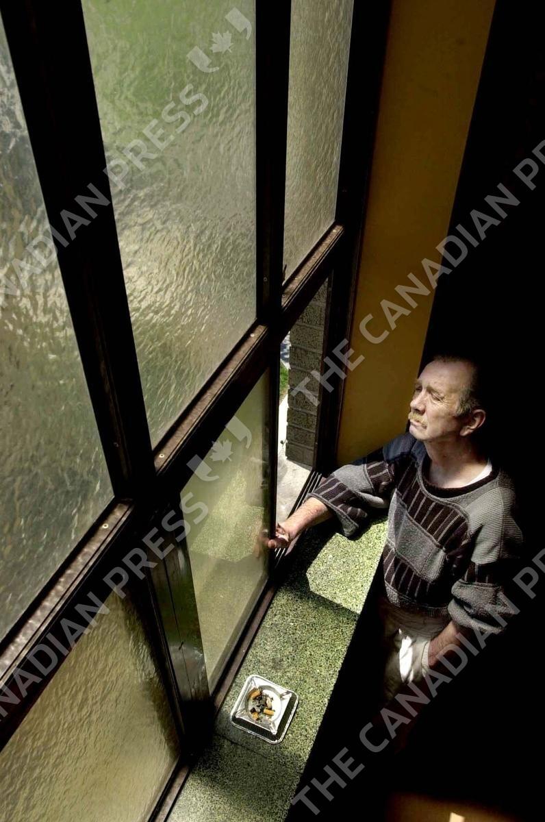 Schizophrenic Don Avery, shown in Toronto Wednesday May 23, 2001, is enrolled in the Annex program at the city's Seaton House, Canada's largest homeless shelter. The program provides a safe place to drink for homeless alcoholics with severe mental illness, behavioural problems, brain injuries and other intractable problems. (CP PHOTO/Aaron Harris)