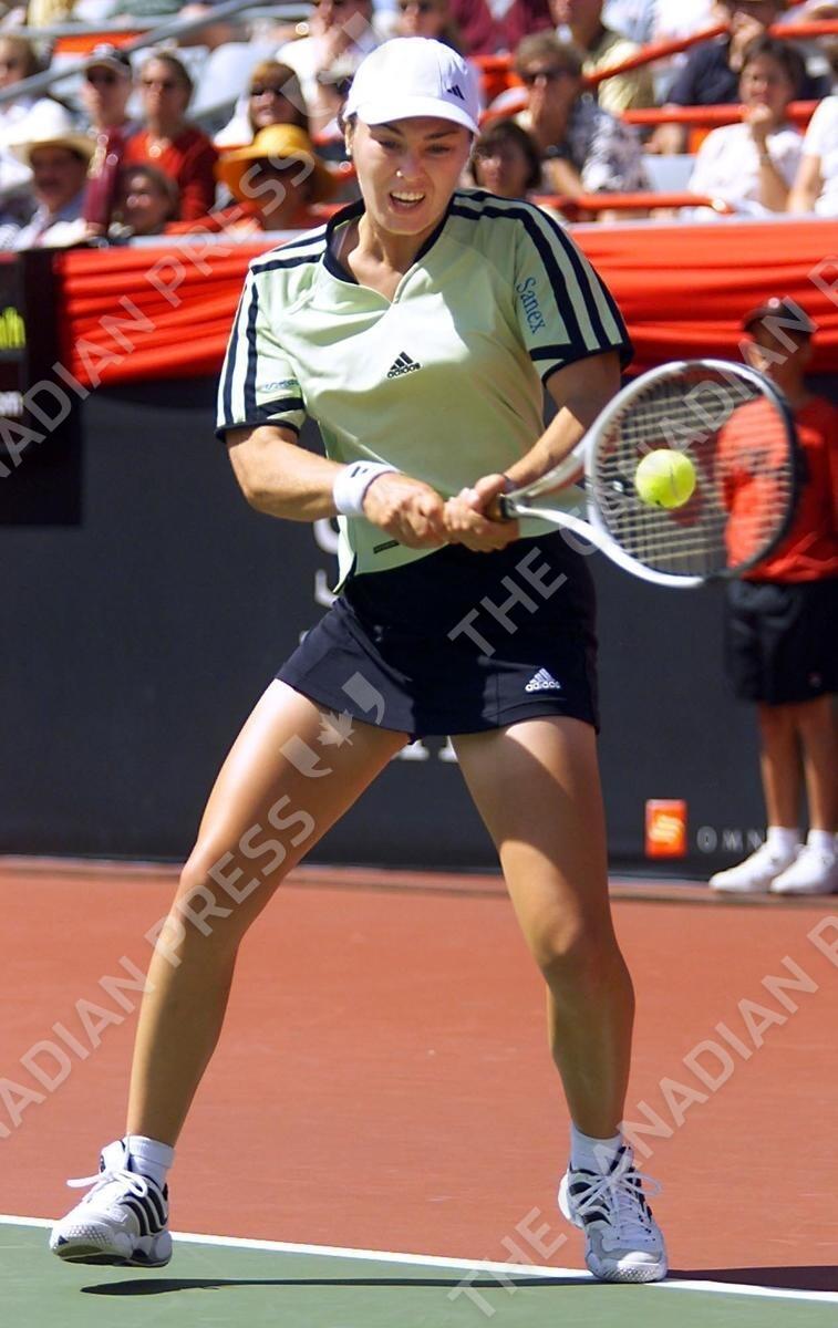 Martina Hingis, of Switzerland, returns to Conchita Martinez, of Spain, during semi-finals play at the du Maurier Open tennis tournament Saturday, August 19, 2000, in Montreal. Hingis beat Martinez 6-3, 6-2 to move on to the finals. (CP PHOTO/Paul Chiasson)
