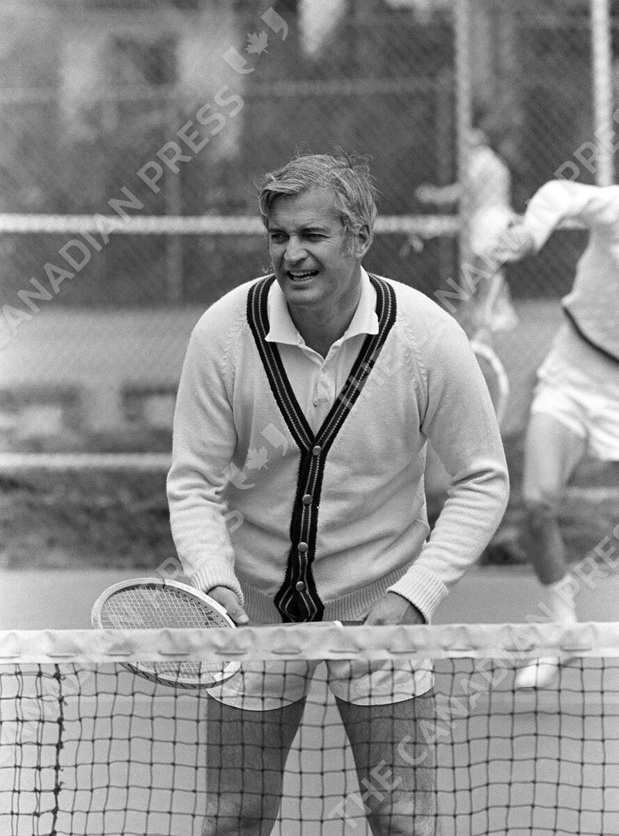 Ottawa - May 7, 1972 - Finance Minister John Turner playing tennis in 40 degree temperatures in Ottawa. Mr. Turner is to present a budget to the House of Commons on Monday. (CP/Chuck Mitchell)