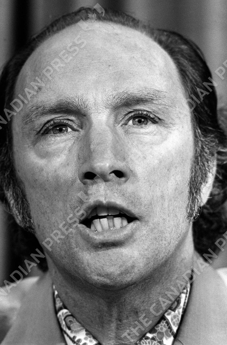 Prime Minister Pierre Trudeau answers reporters' questions during a news conference in Ottawa friday night, Sept. 1, 1972. Mr. Trudeau announced a federal election for Oct. 30. (CP PHOTO/ Charles Mitchell)