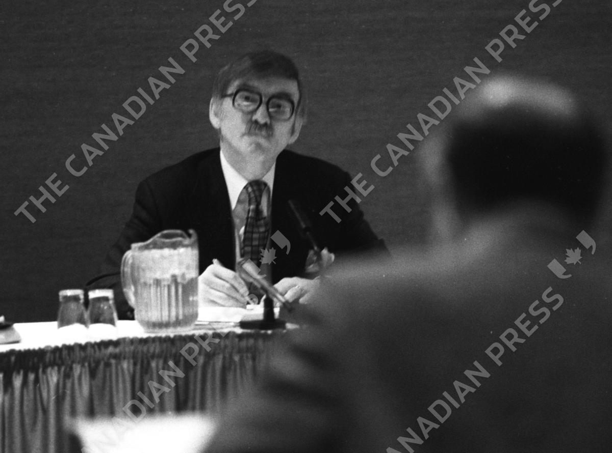 FILE--Justice Jules Deschenes at hearings for war criminals in this 1985 photo. For 60 years, Canada has struggled sporadically with the question of how to deal with war crimes and the people who commit them. It’s never found the ideal solution. Political support and public interest have waxed and waned over three generations. (CP PICTURE ARCHIVE/ file)