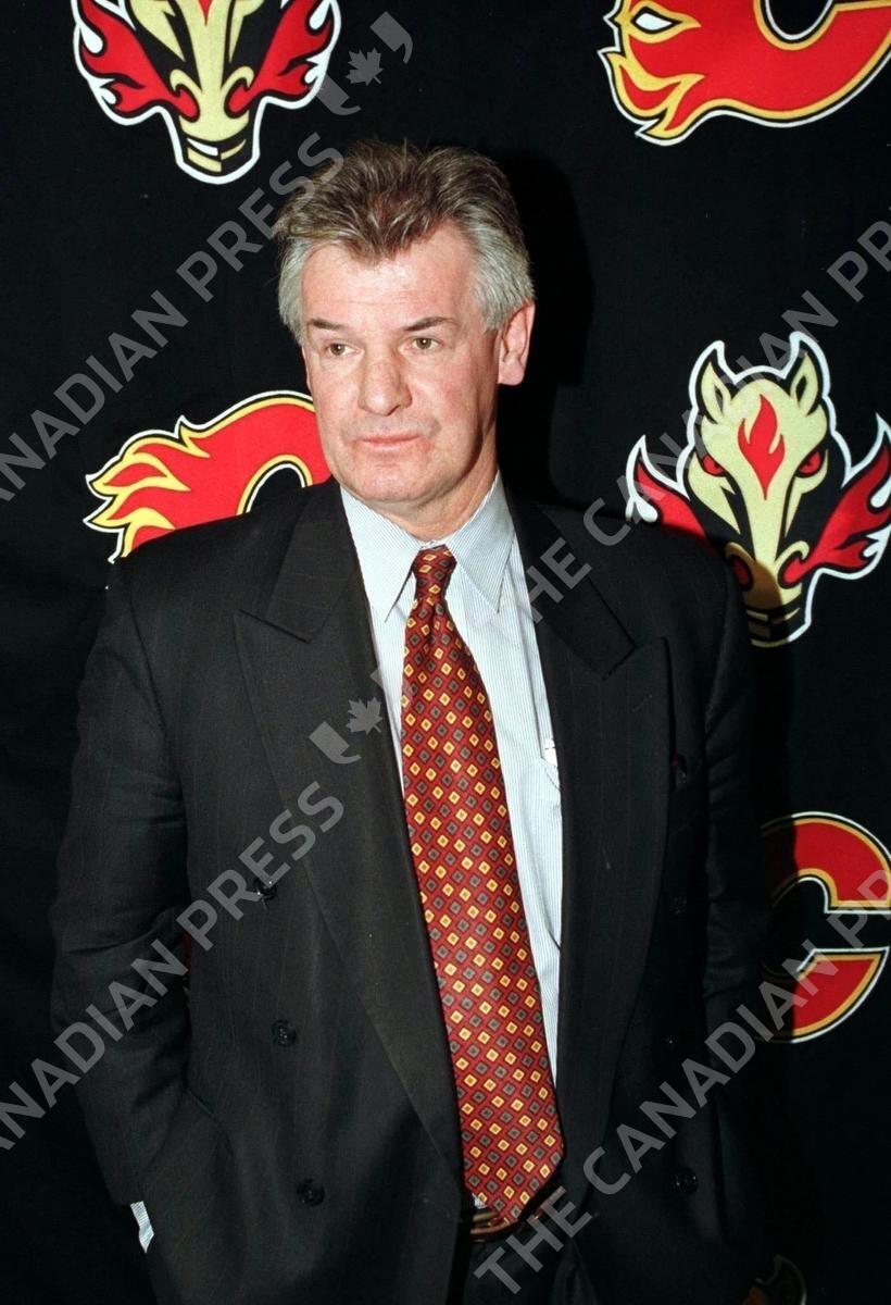 (CGYX101)CALGARY, Feb. 28--STAR TRADED--Calgary Flames vice-president and general manager Al Coates looks pensive after a press conference announcing the trade of star forward Theoren Fleury to the Colorado Avalanche in Calgary, Sunday. (CP PHOTO)1999(str-Mike Ridewood)