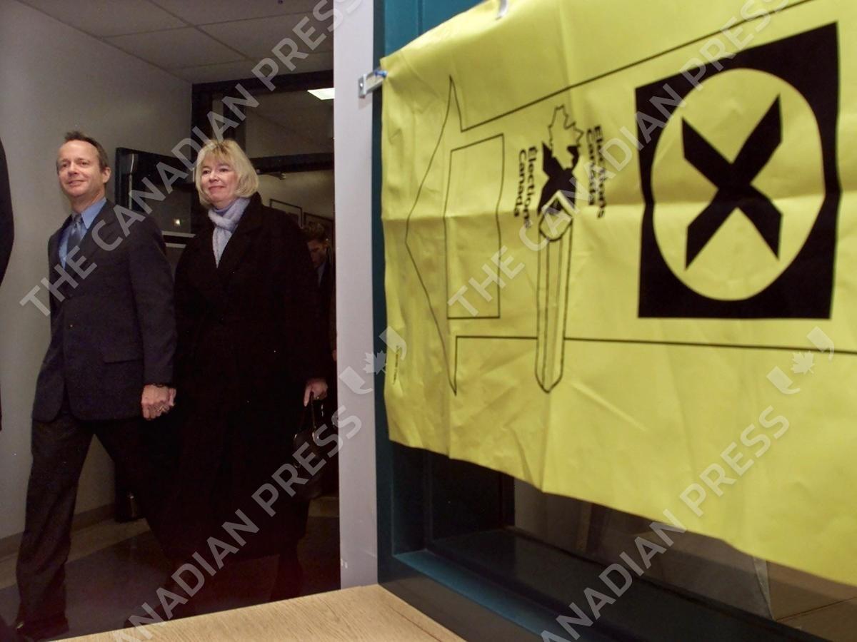 Canadian Alliance leader Stockwell Day leaves his polling station with his wife Valorie after they cast their ballots in Summerside, British Columbia, Monday, Nov. 27, 2000.(CP PHOTO/Tom Hanson)