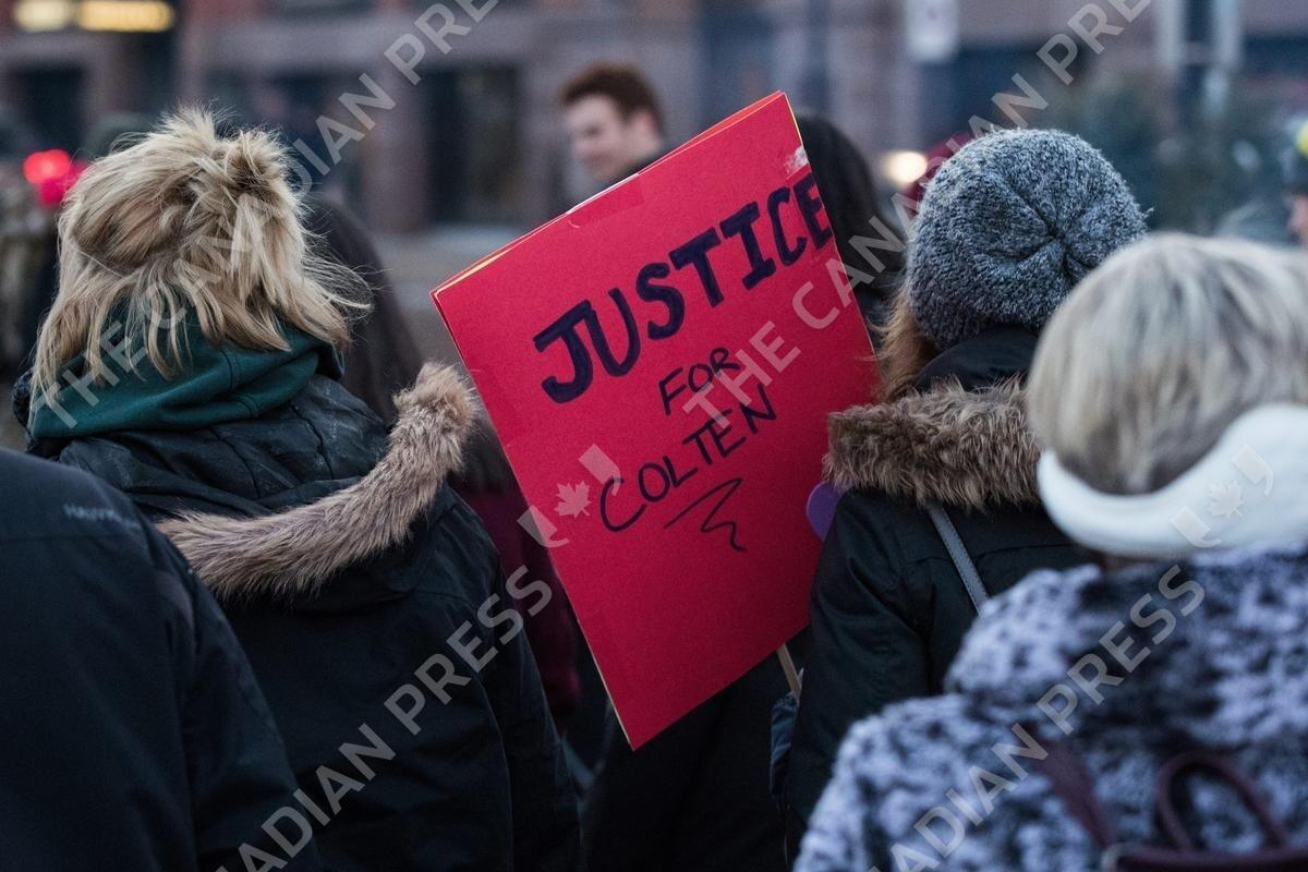 People hold a rally in support of MMIW in Kingston, Ontario on Wednesday, February 14, 2018. THE CANADIAN PRESS IMAGES/Lars Hagberg