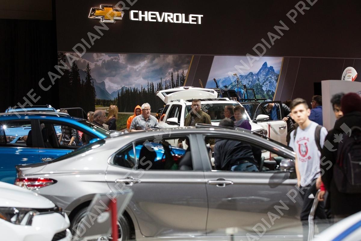 People look at Chevrolet cars during the Toronto International Auto show in Toronto, Ontario on Friday, Feb. 23, 2018. THE CANADIAN PRESS IMAGES