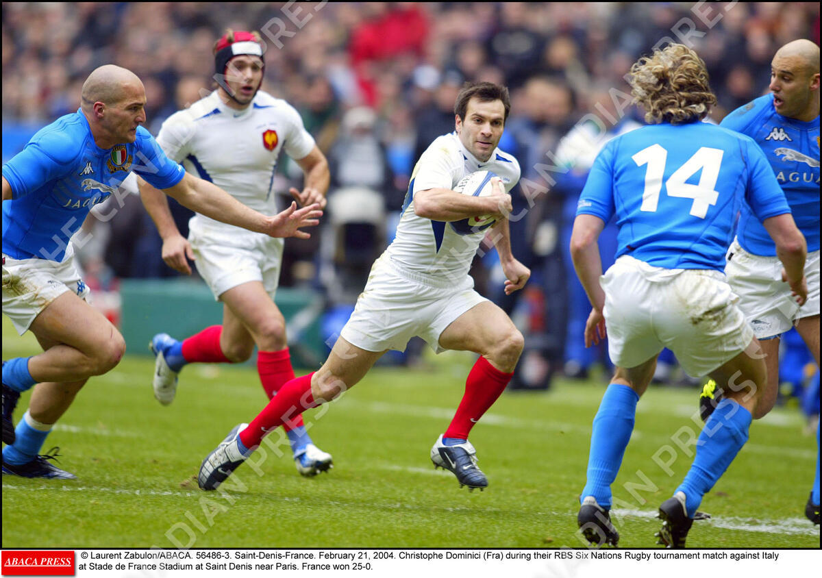 © Laurent Zabulon/ABACA. 56486-3. Saint-Denis-France. February 21, 2004. Christophe Dominici (Fra) during their RBS Six Nations Rugby tournament match against Italy at Stade de France Stadium at Saint Denis near Paris. France won 25-0.