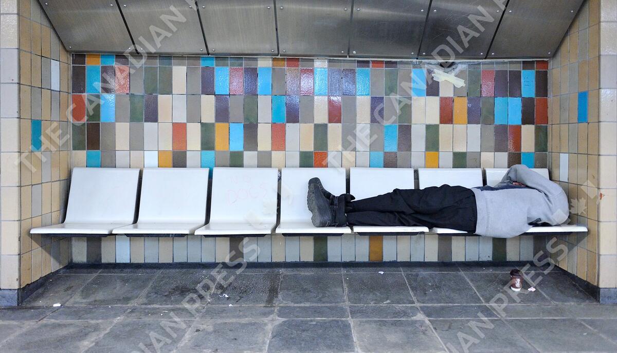 An homeless man sleeping on a bench in the subway was photographed at Montreal on April 16, 2012. In western countries such as Canada, the typical homeless person is male and single. Ethnic minorities are also overrepresented in homeless populations, with such groups two and half times more likely to be homeless in the US. The median age of homeless people is approximately 35.