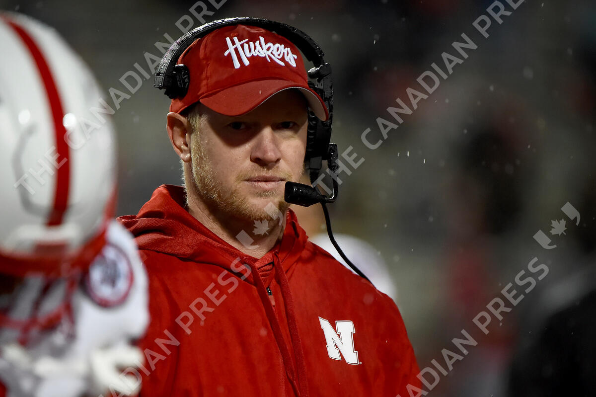 FILE - In this Nov. 23, 2019, file photo, Nebraska head coach Scott Frost looks on during the second half of an NCAA college football game against Maryland in College Park, Md. It has been a slow build for Frost at Nebraska. The Cornhuskers are 9-15 in his first two seasons, including just 4-8 against Big Ten West opponents and only two road wins. (AP Photo/Will Newton, File)