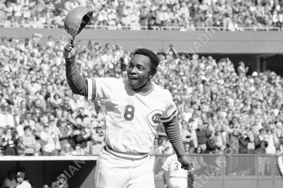 FILE - In this Saturday, Oct. 16, 1976, file photo, Cincinnati second baseman Joe Morgan tips his helmet to the fans as he rounds the bases after a homer in the first inning against the New York Yankees at Riverfront Stadium in Cincinnati. Hall of Fame second baseman Joe Morgan has died. A family spokesman says he died at his home Sunday, Oct. 11, 2020, in Danville, Calif. (AP Photo/File)
