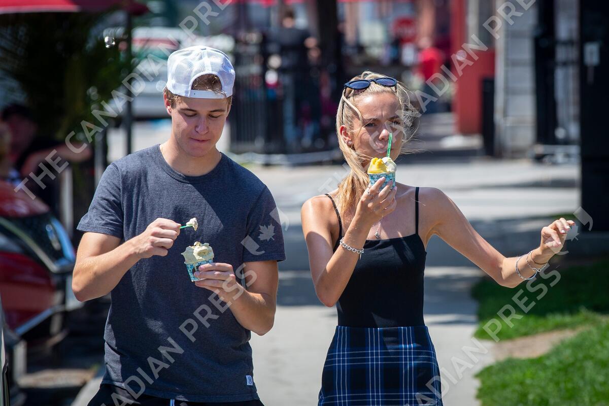People eat ice cream as they try to cool off during a hot summer day in Kingston, Ontario on Monday, July 27, 2020. THE CANADIAN PRESS IMAGES/Lars Hagberg