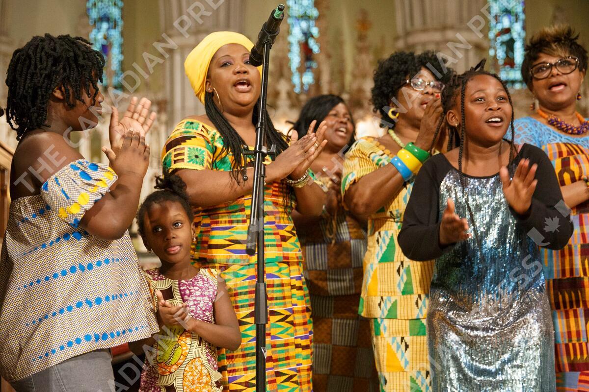 The Ghanaian Choir provide music before the service at the 24th Annual Black Heritage Celebration Service, Journey into Light, Giving Thanks for Our Ordained Ministers!, at St. Paul's Anglican Church, Bloor Street in Toronto on Sunday, February 24, 2019. THE CANADIAN PRESS IMAGES/Michael Hudson