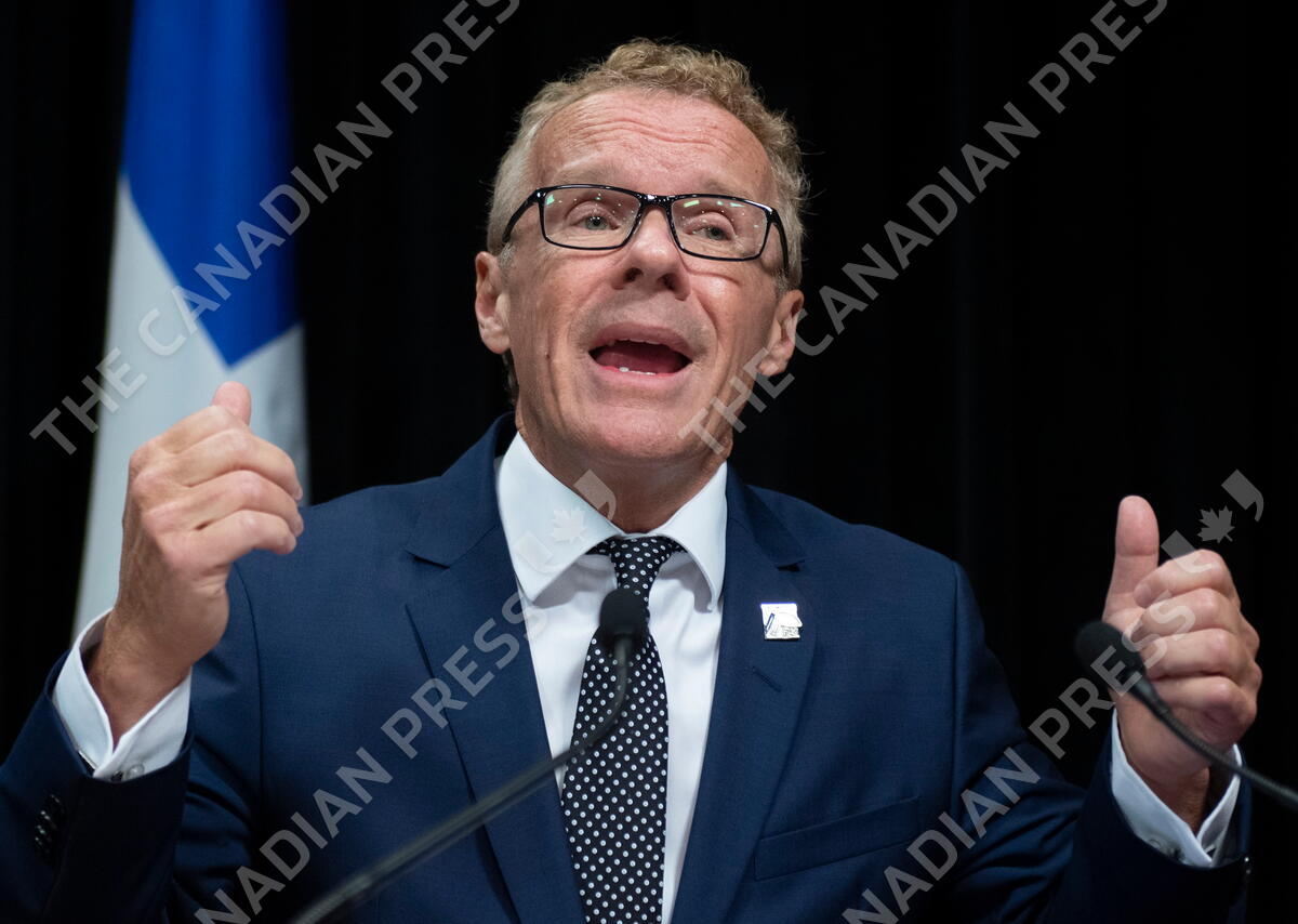 Quebec Labour, Employment and Social Solidarity Jean Boulet responds to reporters questions during a news conference on the COVID-19 pandemic at the National Assembly in Quebec City, Thursday, March 26, 2020. THE CANADIAN PRESS/Jacques Boissinot