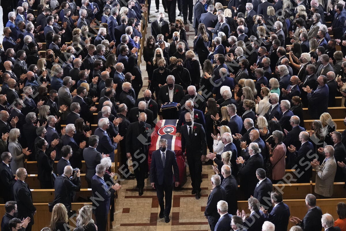 Pallbearers carry the casket of former Montreal Canadiens hockey player Guy Lafleur, following the funeral service in Montreal on Tuesday, May 3, 2022. THE CANADIAN PRESS/Paul Chiasson