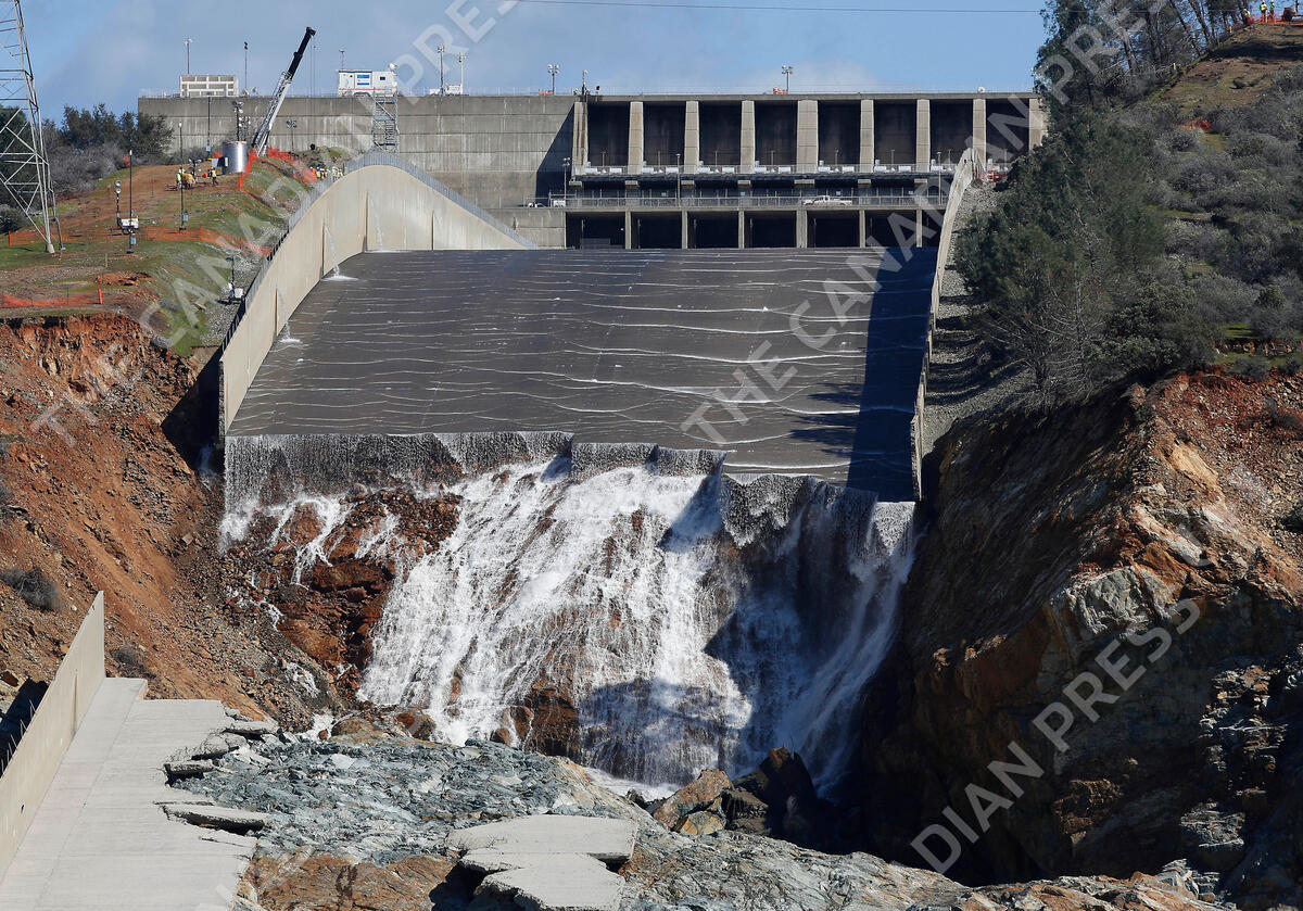 FILE - Water flows down the Oroville Dam's crippled spillway in Oroville, Calif., on Feb. 28, 2017. Americans wondering whether a nearby dam could be dangerous can look up the condition and hazard ratings of tens of thousands of dams nationwide using an online database run by the federal government. But they won't find the condition of Oroville Dam, which underwent a $1 billion makeover after its spillway failed. (AP Photo/Rich Pedroncelli, File)