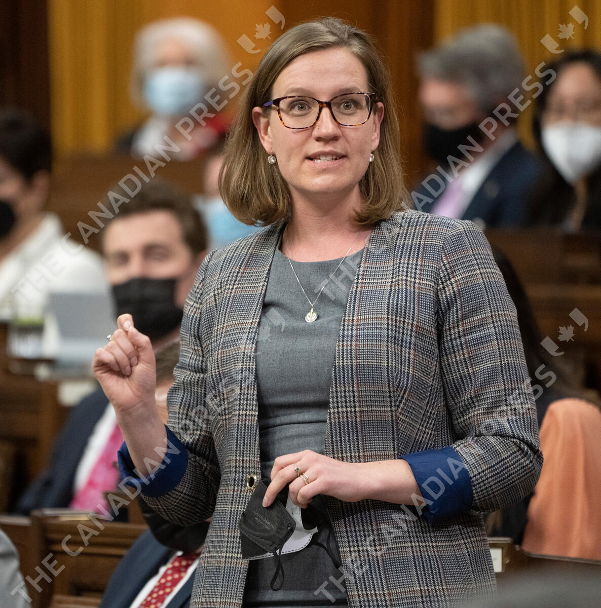 Families, Children and Social Development Minister Karina Gould rises during Question Period, Wednesday, March 30, 2022 in Ottawa. THE CANADIAN PRESS/Adrian Wyld