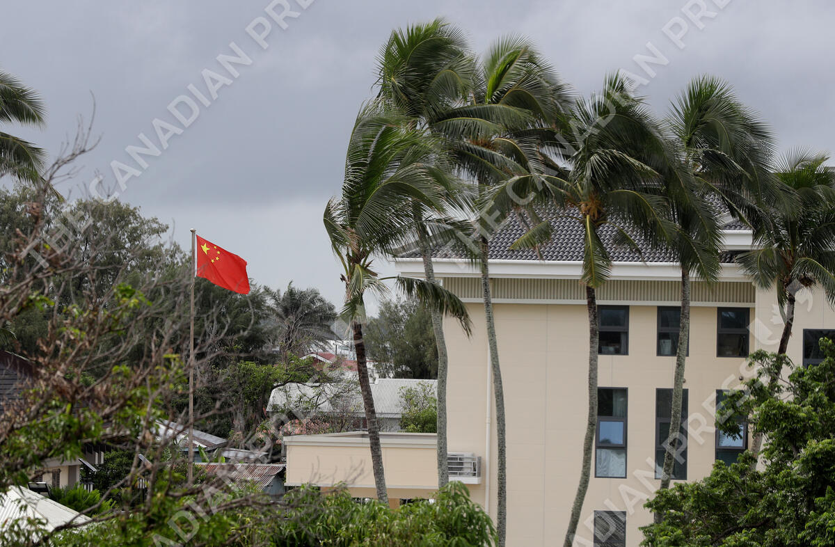 The Chinese flags flies at their embassy in Nuku'alofa, Tonga, Monday April 8, 2019. China wants 10 small Pacific nations to endorse a sweeping agreement covering everything from security to fisheries in what one leader warns is a “game-changing†bid by Beijing to wrest control of the region. (AP Photo/Mark Baker)