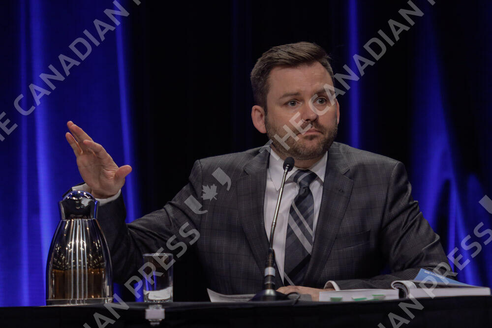 Parti Quebecois leader Paul St-Pierre Plamondon reacts to the CAQ budget at the Quebec City congress center Tuesday, March 22, 2022. THE CANADIAN PRESS IMAGES/Francis Vachon.