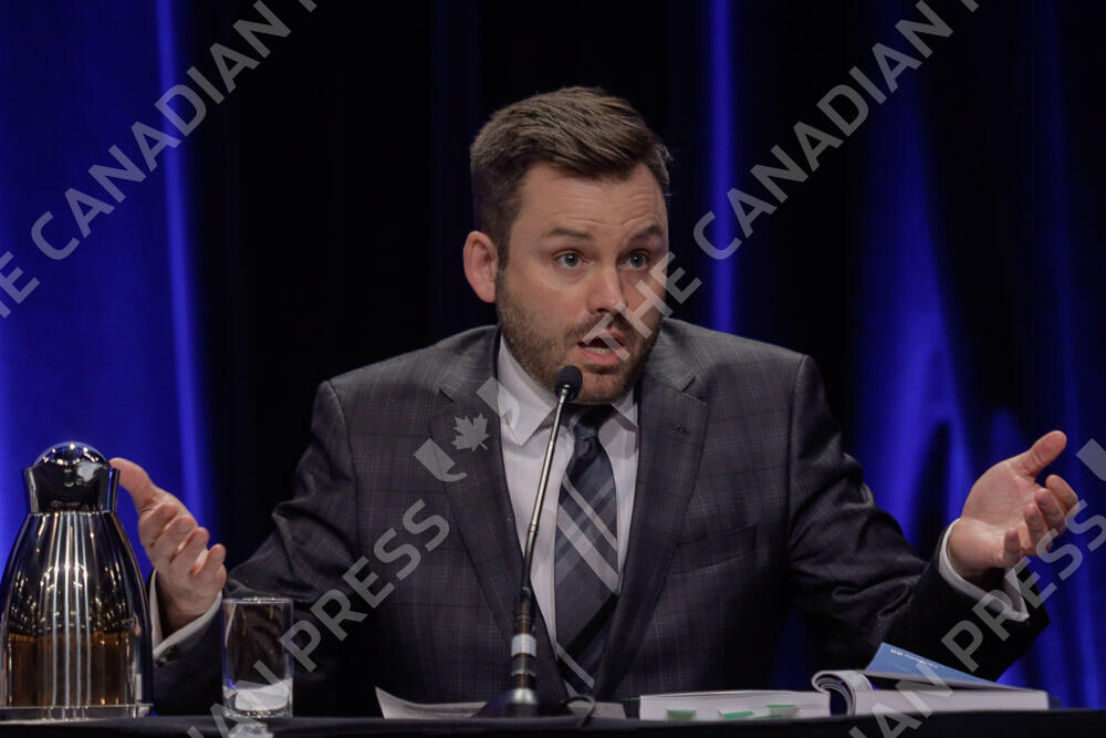 Parti Quebecois leader Paul St-Pierre Plamondon reacts to the CAQ budget at the Quebec City congress center Tuesday, March 22, 2022. THE CANADIAN PRESS IMAGES/Francis Vachon.