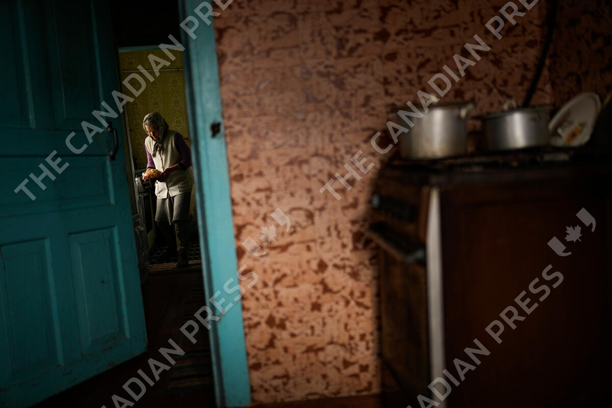 Olena Koptyl, 63, removes Ukrainian traditional Easter bread, or Paska, from her oven as she bakes at home on the outskirts of Chernihiv, northern Ukraine, Saturday, April 23, 2022. (AP Photo/Francisco Seco)