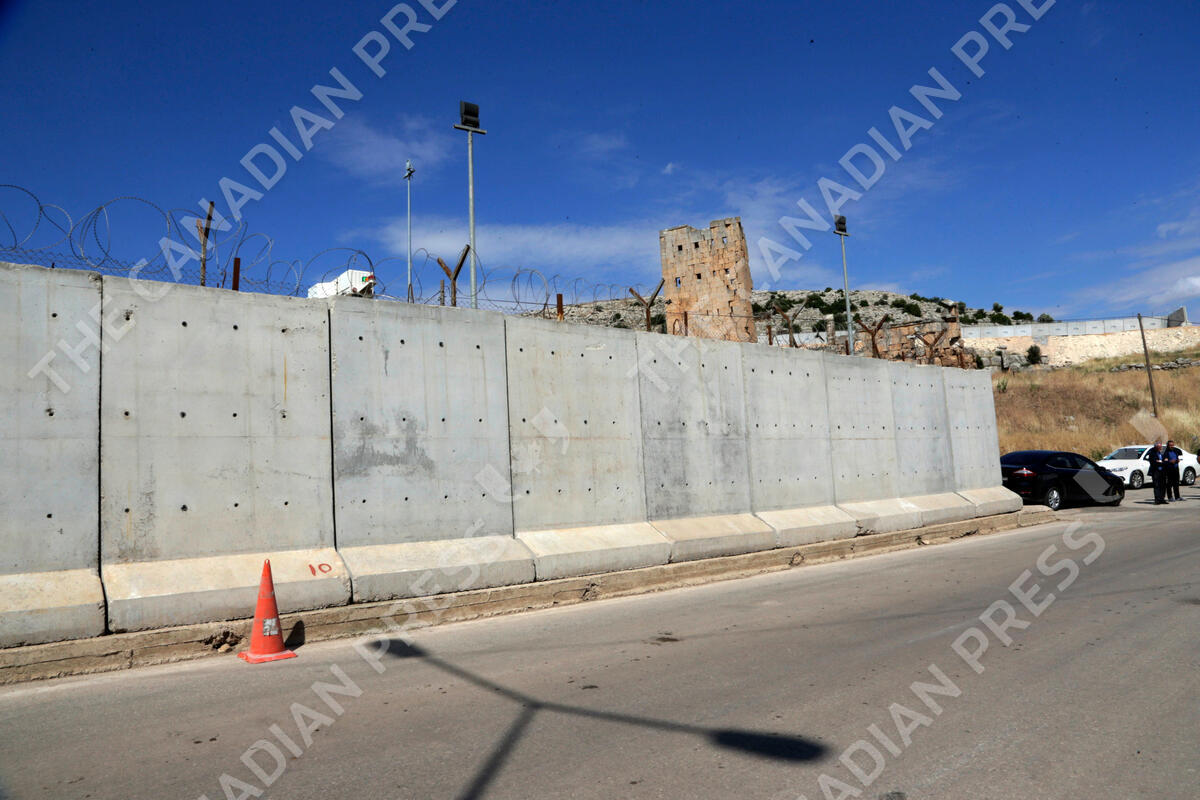 FILE - This May 24, 2017 file photo shows the newly built wall near Cilvegozu border gate in Reyhanli, at the Turkey-Syria border. Within a two-week span, Turkey's president has caused a stir by throwing a wrench in Sweden and Finland's historic bid to join the NATO alliance, lashed out at NATO-ally Greece and announced plans for a new incursion into Syria. The Turkish leader appears to be using Turkey's power to veto NATO's expansion as an opportunity to air a variety of grievances against the Western nations and to force them to take action against Kurdish militants and other groups that Turkey views as terrorists. (AP Photo/Burhan Ozbilici, File)
