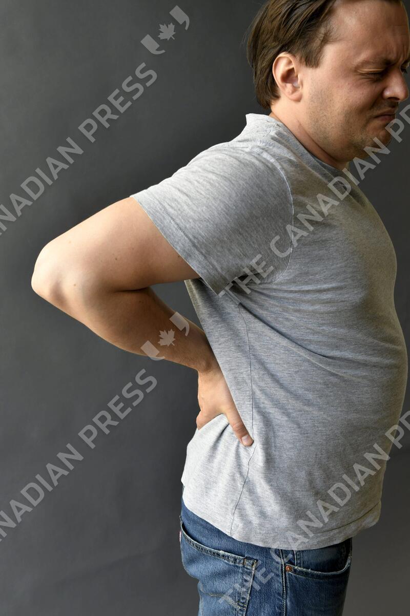 Man holds his back, back pain. LEHTIKUVA / HEIKKI SAUKKOMAA - FINLAND OUT. NO THIRD PARTY SALES.