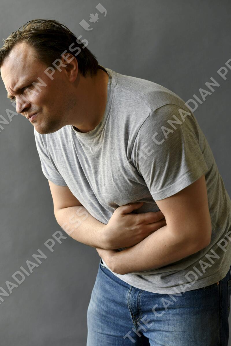 Man holds his stomach, stomach pain. LEHTIKUVA / HEIKKI SAUKKOMAA - FINLAND OUT. NO THIRD PARTY SALES.