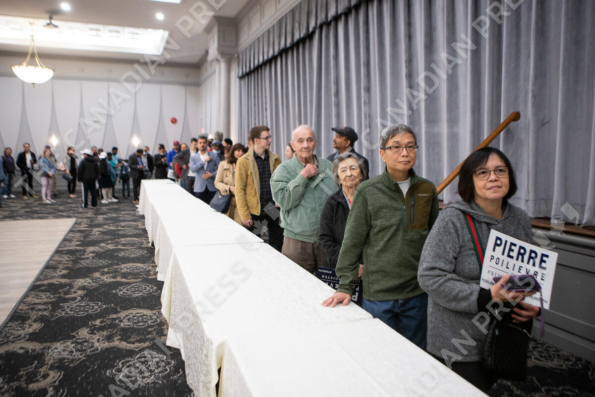 Supporters queue to have a photo taken with federal Conservative leadership candidate Pierre Poilievre, after he holds a campaign rally in Toronto, Saturday, April 30, 2022. THE CANADIAN PRESS/Chris Young
