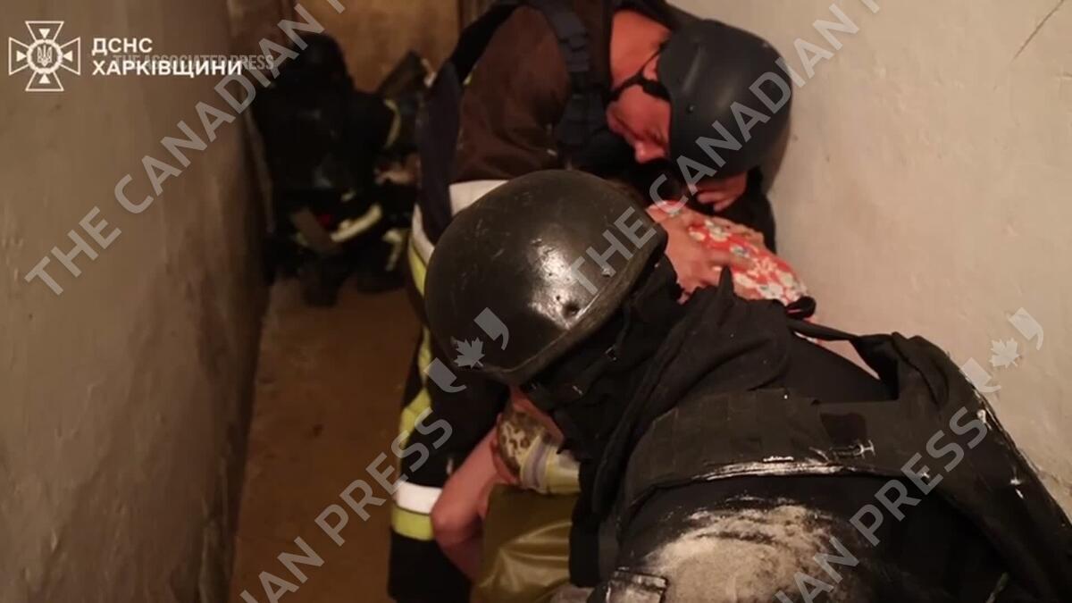 CP174514876 | Ukrainian firefighters respond after Kharkiv targeted by Russian drone attack barrage