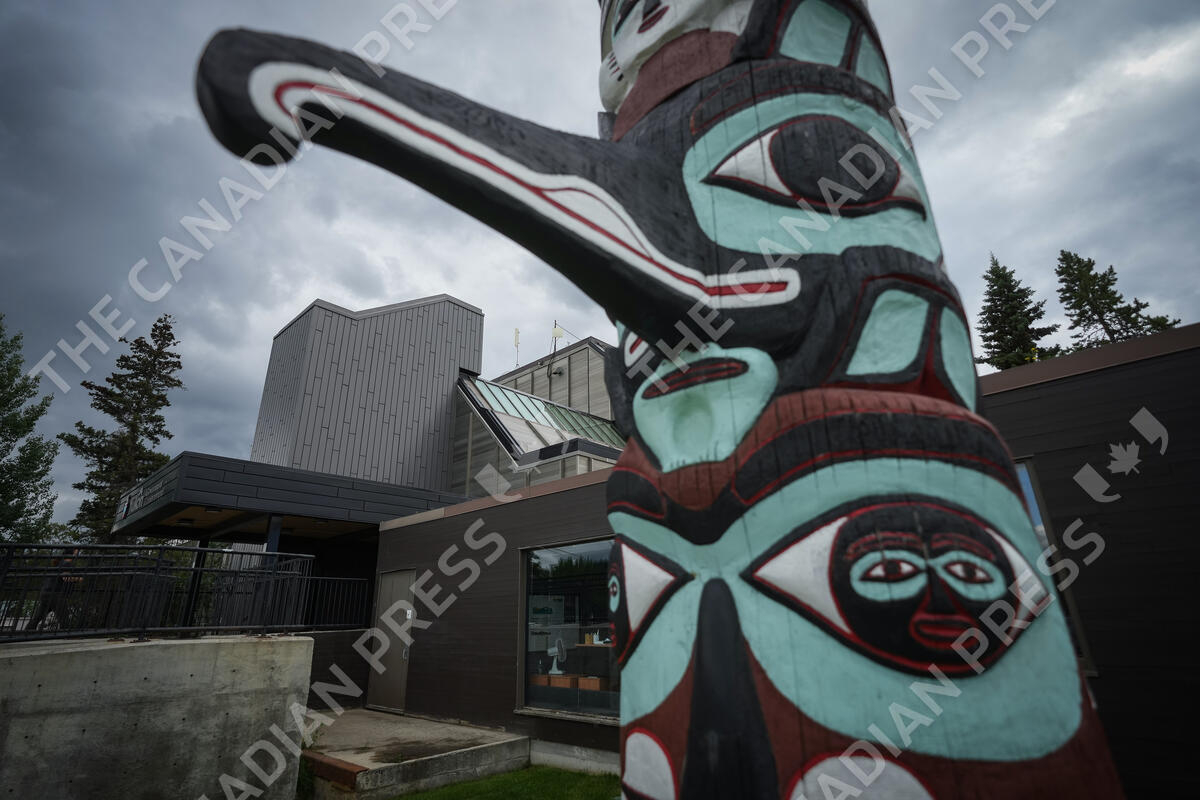 A totem pole is seen outside the Yukon Legislative Building in Whitehorse, on Wednesday, July 23, 2025. THE CANADIAN PRESS/Darryl Dyck