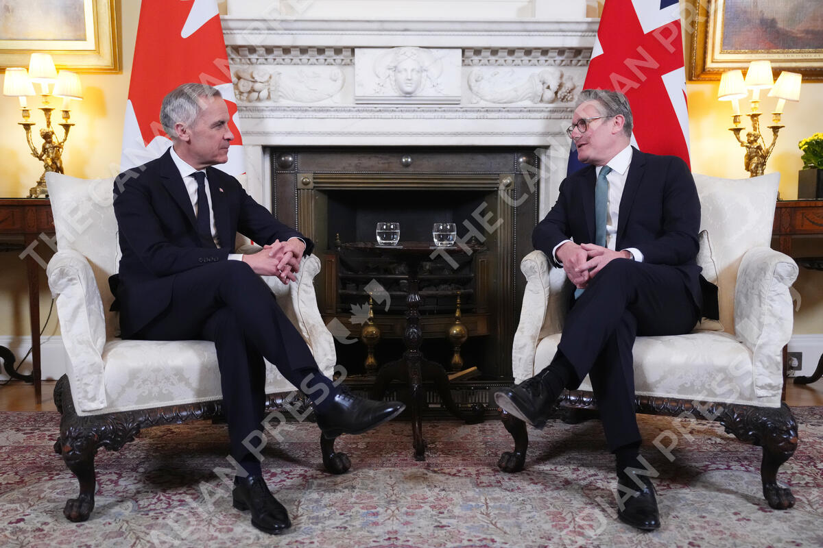 Prime Minister Mark Carney meets with British Prime Minister Keir Starmer as he arrives in London on Monday, March 17, 2025. THE CANADIAN PRESS/Sean Kilpatrick