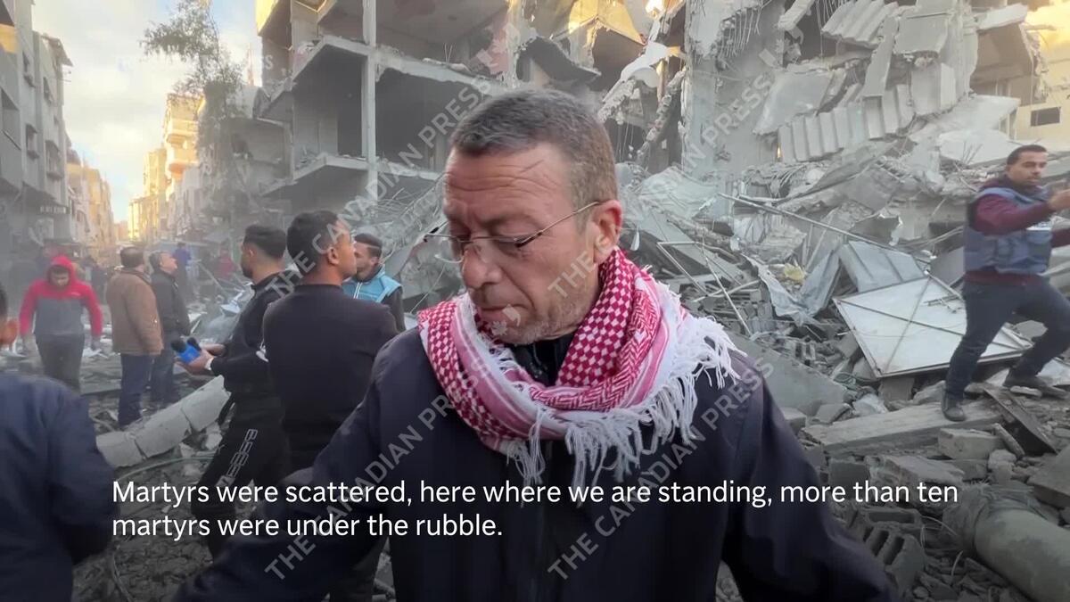 An Israeli airstrike hit the central Gaza Strip on Thursday, killing at least 37 Palestinians and wounding dozens more, according to Palestinian medics. (Production: Wafaa Shurafa)