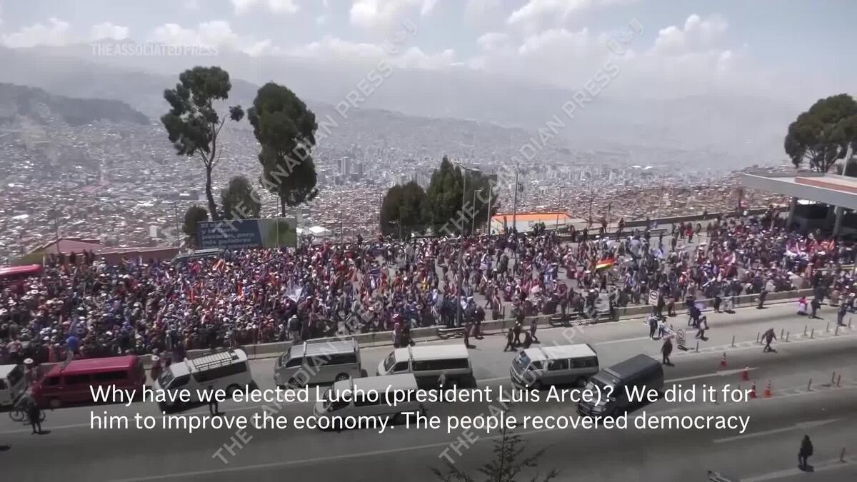 A protest march led by former Bolivian president Evo Morales ended in clashes with police upon reaching La Paz on Monday. (AP Video/ Carlos Guerrero)
