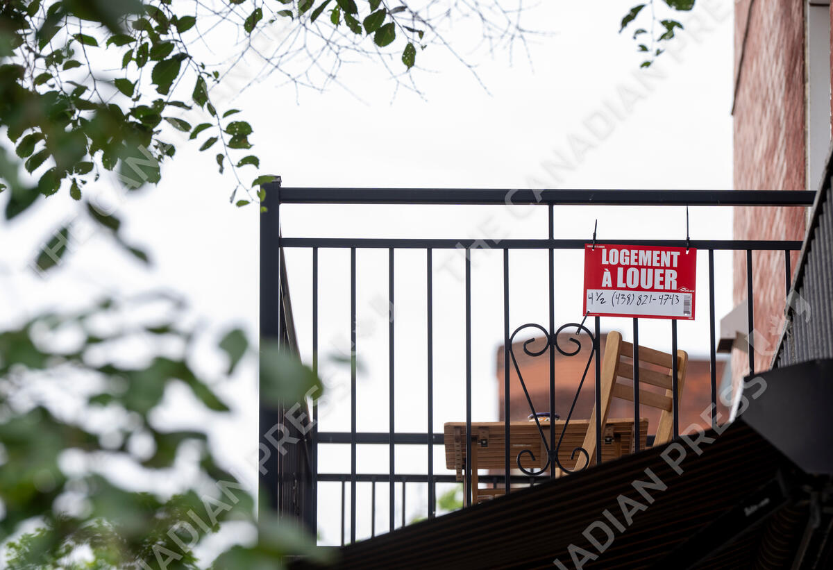 A rental sign is seen outside an apartment in Montreal on Thursday, June 26, 2025. THE CANADIAN PRESS/Christinne Muschi