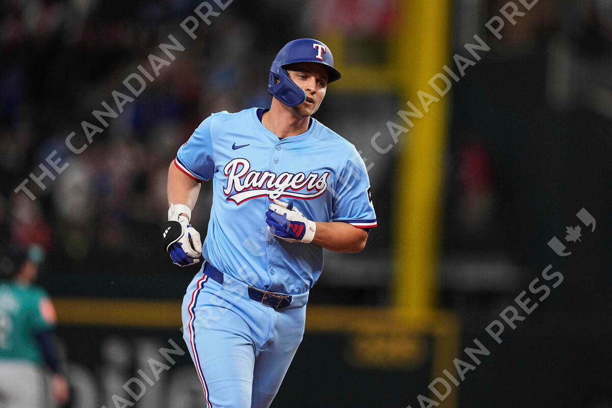 Texas Rangers' Corey Seager rounds the bases after hitting a two-run home run in a baseball game against the Seattle Mariners Sunday, June 29, 2025, in Arlington, Texas. (AP Photo/Tony Gutierrez)