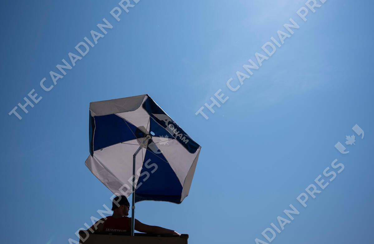 A lifeguard watches over Verdun Beach in Montreal on Monday, June 30, 2025. THE CANADIAN PRESS/Christinne Muschi