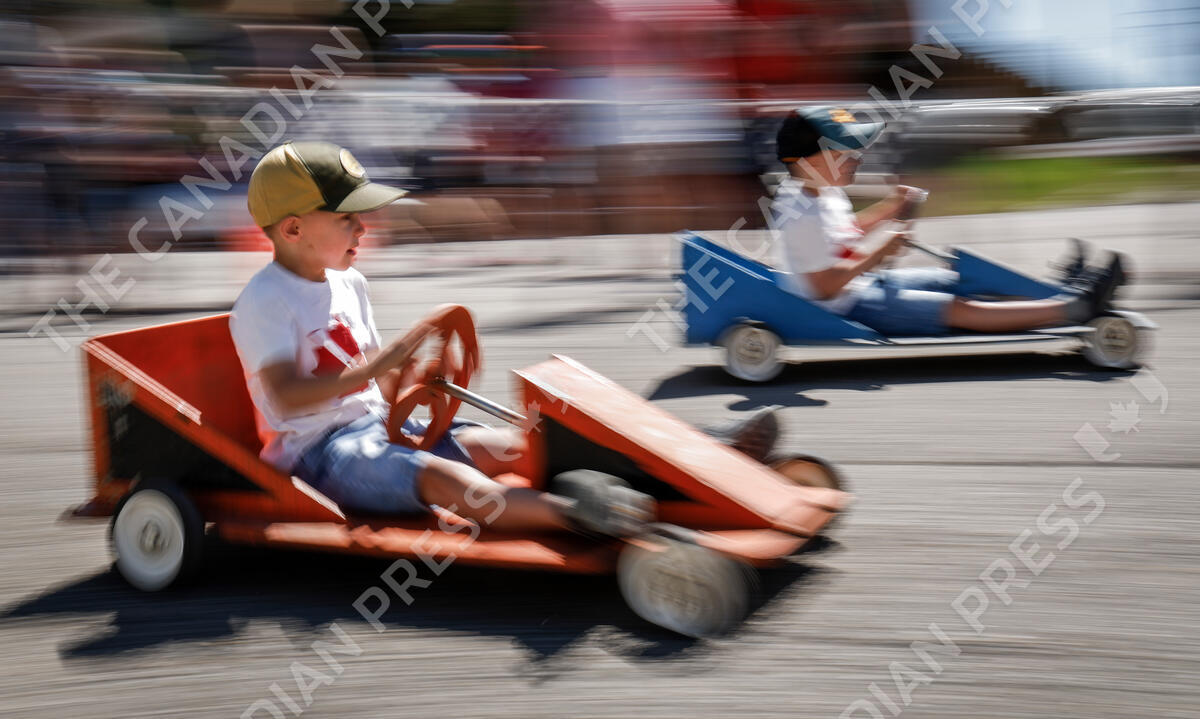 Youngsters race in a soap box during Canada Day celebrations in Cremona, Alta., Tuesday, July 1, 2025.THE CANADIAN PRESS/Jeff McIntosh