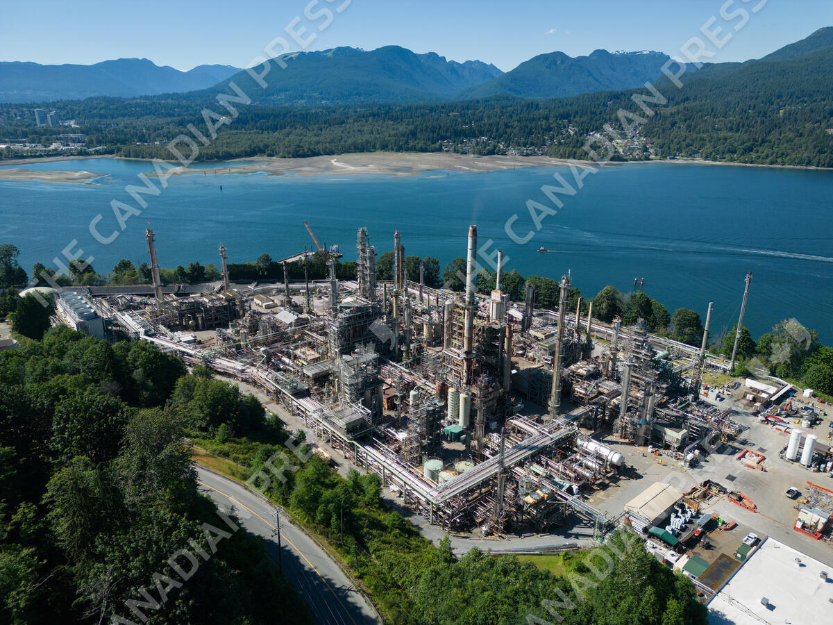 Parkland Corporation's Burnaby Refinery is seen on the waters of Burrard Inlet in an aerial view, in Burnaby, B.C., on Monday, June 30, 2025. The refinery produces gasoline, diesel, jet fuels, asphalts, heating fuels, heavy fuel oils, butanes, and propane. THE CANADIAN PRESS/Darryl Dyck