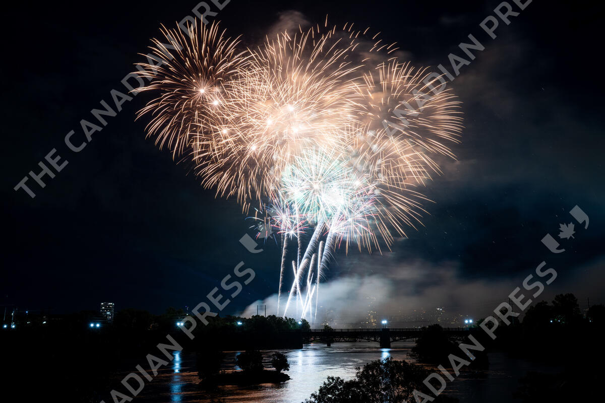 Fireworks explode over the Ottawa River during Canada Day festivities in Ottawa, on Tuesday, July 1, 2025. THE CANADIAN PRESS/Spencer Colby