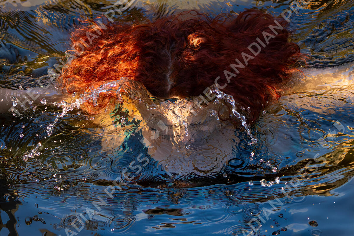 A woman plunges in icy water celebrating the Orthodox Epiphany in the Stroginskaya floodplain in Moscow, Russia, on Sunday, Jan. 19, 2025. (AP Photo/Alexander Zemlianichenko)