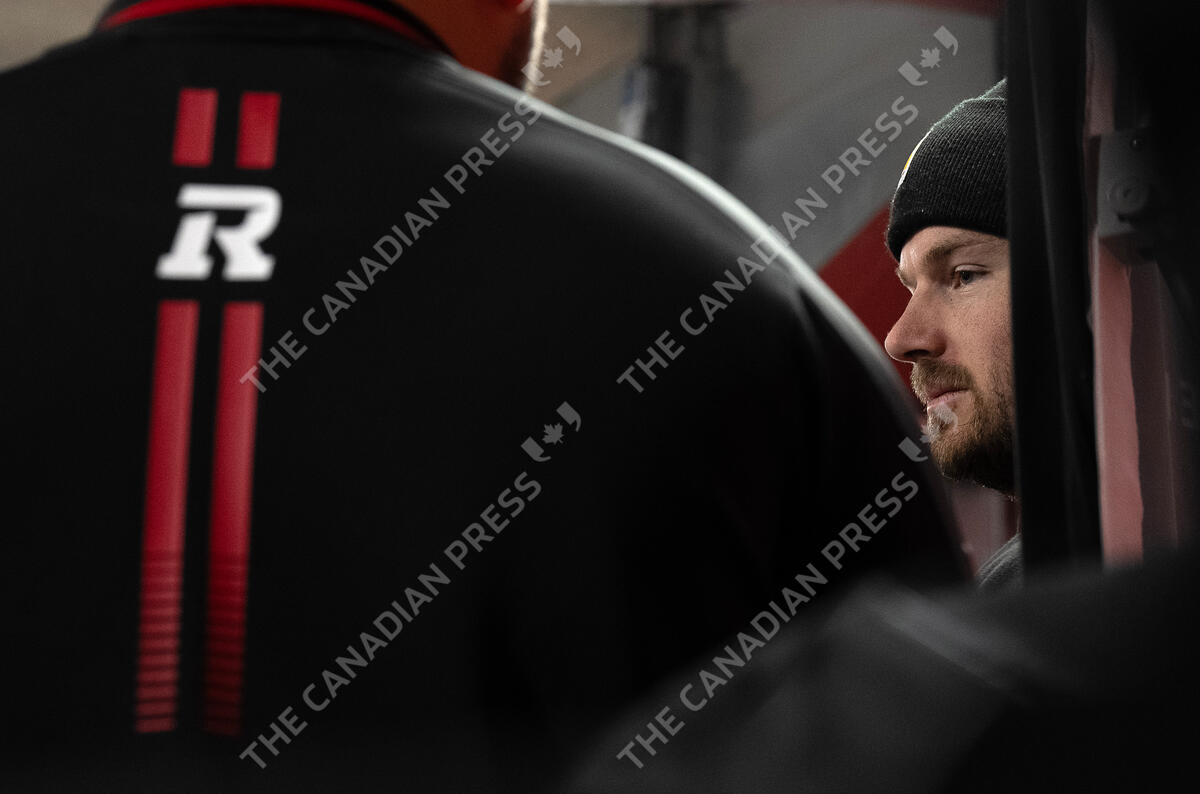 Ottawa RedBlacks quarterback Dru Brown speaks with reporters, Monday, Nov. 4, 2024 in Ottawa. THE CANADIAN PRESS/Adrian Wyld
