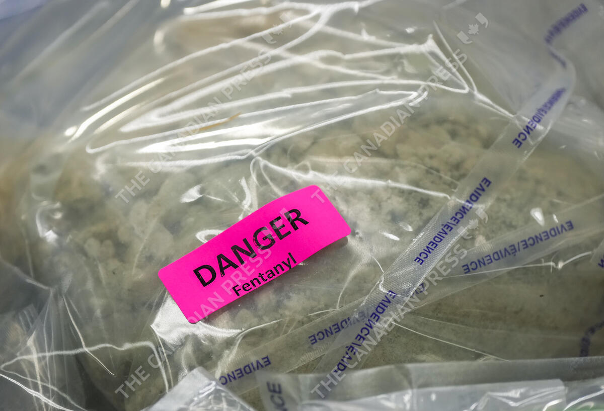 Fentanyl that was seized last week is displayed before a news conference at RCMP headquarters, in Surrey, B.C., on Thursday, October 31, 2024. The RCMP says they have dismantled "the largest and most sophisticated fentanyl and methamphetamine drug superlab in Canada," after an operation was conducted in Falkland, B.C., and Surrey beginning last Friday. THE CANADIAN PRESS/Darryl Dyck
