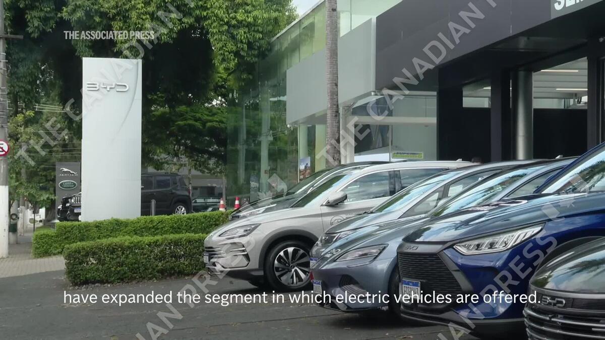 Brazil, the world’s sixth-largest auto market, is seeing a surge in EV sales—and BYD is leading the charge. Seven out of 10 fully electric vehicles sold in the country are from the brand, which also leads hybrid sales. (AP Video by Thiago Mostazo)