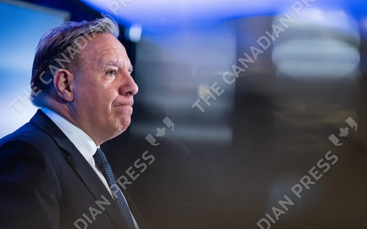 Quebec Premier Francois Legault speaks to the media during a press conference in Montreal on Monday, Feb. 3, 2025. THE CANADIAN PRESS/Christinne Muschi